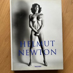 Helmut Newton by Taschen. A photography book showcasing the work of Helmut Newton. The book has some wear and tear on the corners of the cover