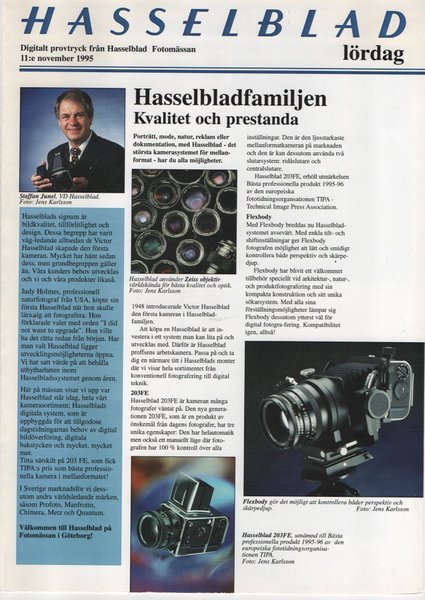 Hasselblad broschyr, svensk, 4 sidor, från 1995