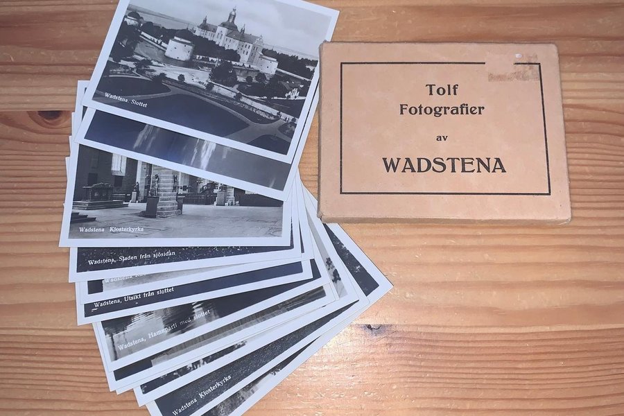 - 12st små fotografier av Wadstena.