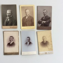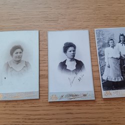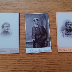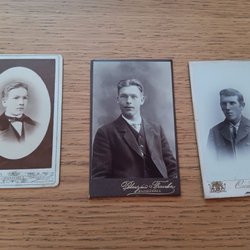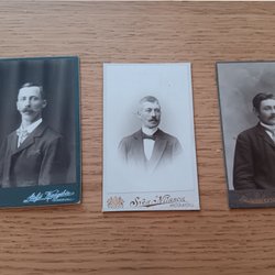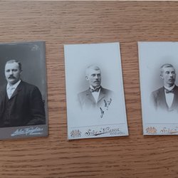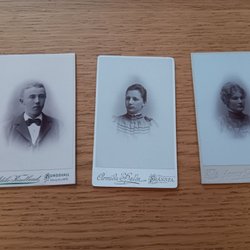 Tre gamla porträttfoton från Sundsvall. Fotografierna är tryckta på tjockare papper.