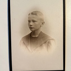 Ett gammalt fotografi från 1902. Bilden föreställer en pojke i sjömanskostym. 1902 Fotograf: H. Barthelson, Norrtelje.