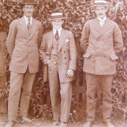 Tre ELEGANTA HERRAR på GALEJ,ett FINT & ANTIKT FOTOGRAFI i GOTT SKICK