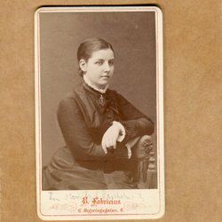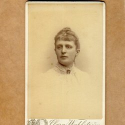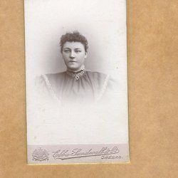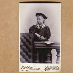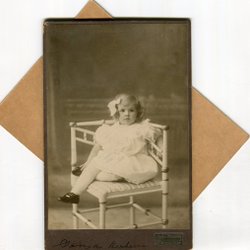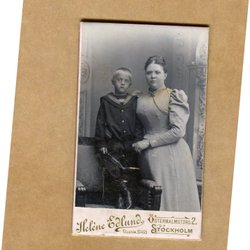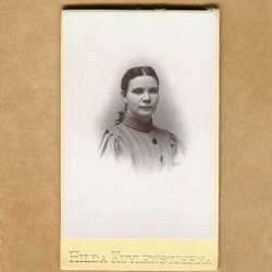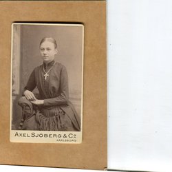 Ett fotografi från Atelier Florman, Stockholm. På framsidan står det "Aggie 1903". På baksidan står det "Till min rara Gudmor från Aggie".