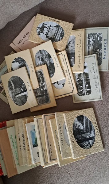 Samling av fotoalbum från olika platser som Karlstad, Örebro, Vadstena, Omberg, Varberg, Sundsvall, Ådalen, Hälsingborg, Kronborg och fler.