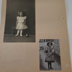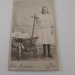 Fotografi föreställande två flickor. Baksidan har handskriven text.
