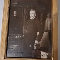 Parti med äldre fotografier. Bilderna visar en ung man i kostym, en ung flicka med lugg, en pojke i sjömanskostym och en ung kvinna i blus.