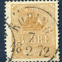 Världens mest berömda och näst dyraste frimärke är faktiskt svenskt: den gula treskillingen som även kallas för gul tre skilling banco. Dyrgripen är poststämplat i Nya Kopparberget den 13 juli 1857. Det var meningen att frimärket skulle ha tryckts i en blå-grön färg tillsammans med tre-schilling-trycket, men istället trycktes det i gult. Detta feltryckta svenska frimärke gavs ut 1855 och är det enda kända överlevande exemplaret, med i dagsläget ett uppskattat värde på över 2,1 miljoner euro. Frimärket har blivit sålt mer än en gång, och det fortsätter hela tiden att stiga i värde då det är det mest eftertraktade svenska frimärket.