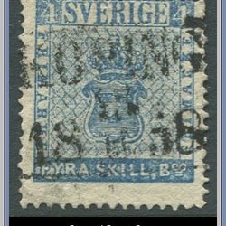 Sverige | F 11 b | 30 öre rödbrun, perf 1855 | Nyans O.P. | Stämplat | Kv 300:-