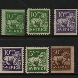 Sex st ostämplade olika valörer Stående lejon med CX