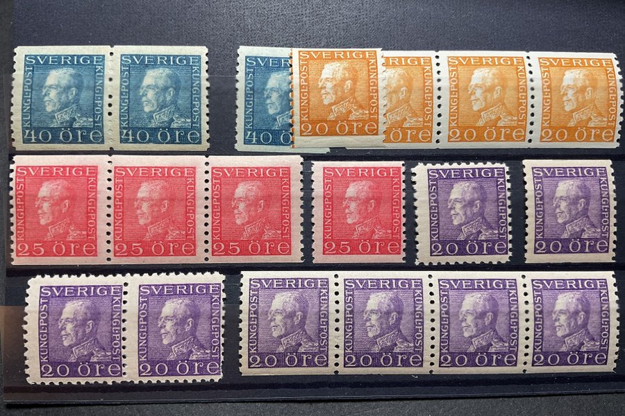 Postfriska Gustaf V profil vänster i olika valörer