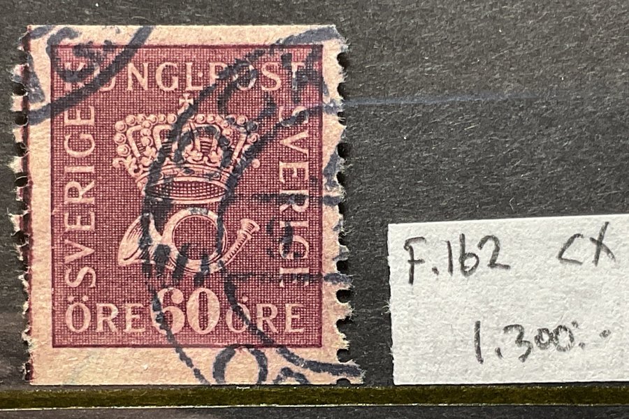 Stämplat Postemblem 60 öre med vattenmärke CX (svår) F.162 (1.300:-)
