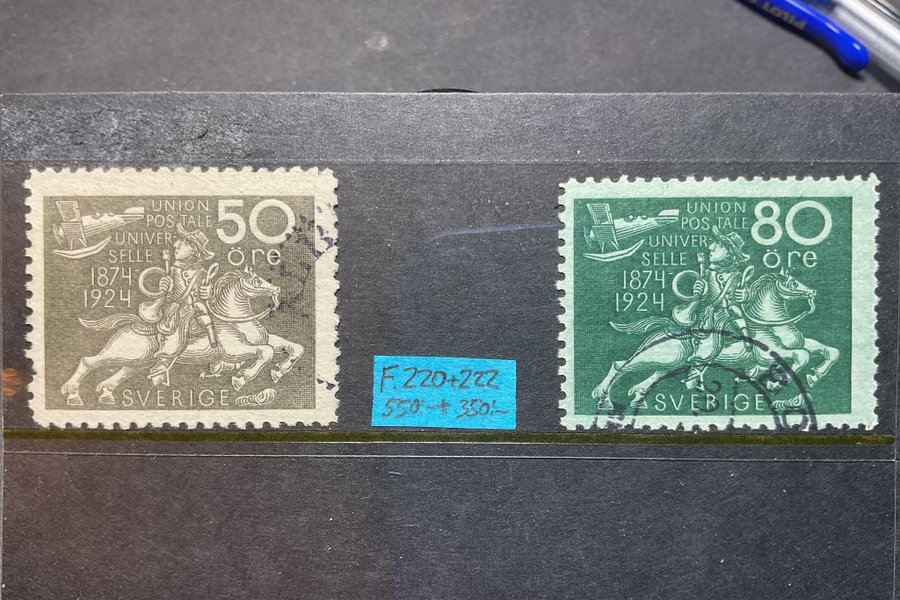 Stämplade Världspostföreningen F.220 50 öre & F.222 80 öre (900:-)