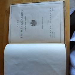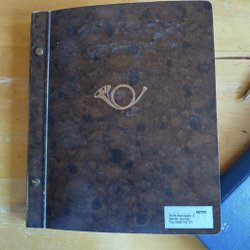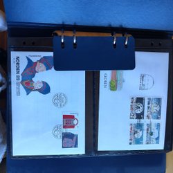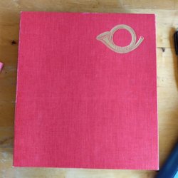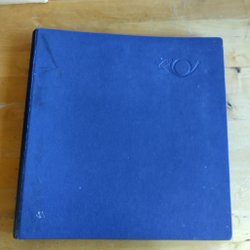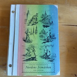 Ett häfte med "Dubblå ll-häfte" skrivet på framsidan. Innehåller en samling frimärken från olika länder, inklusive Sverige, Bermuda och Tyskland.