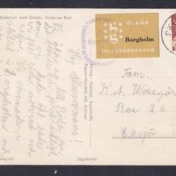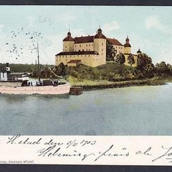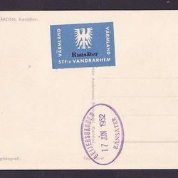 Kalmar slott på kort med STF:s vandrarhemsetikett o stämpel