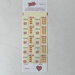 Snart dags att skicka julkort, 10 nya frimärken självhäftande. Baksidestext: "Under perioden 11-20 december kan det ta längre tid än normalt för julpostfrimärken. Övrig tid gäller julpostfrimärken som port för inrikes ekonomibrev upp till 20 gr. Julpostfrimärken kan också användas för in- och utrikes 1:a klassbrev. De motsvara då ett portovärde för inrikes ekonomibrev upp till 20 g och ska kompletteras med frimärken till ordinarie porto. ". De gäller varje år från slutet på november fram till jul. Värde på frimärke är 17:- x 10 = 170:- Utgångspriset här är hälften av 17:- = 8,50:-/st