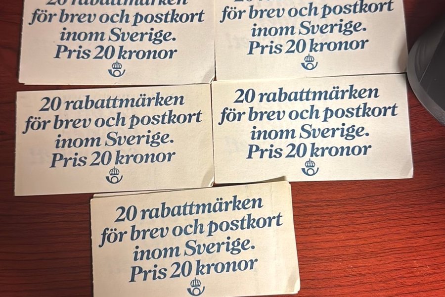 Rabattfrimärken i 5 häften- skickas med rabatterat porto. Samfraktar