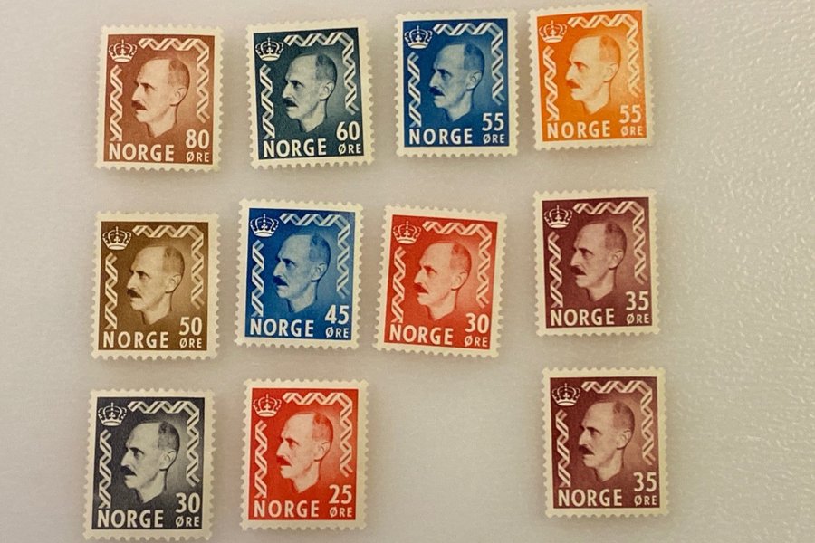Frimärken, Kung Haakon VII, Norge, 1950-51. Postfriska. Utmärkt skick.