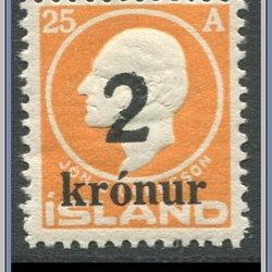 Island | F 29 | 25 aur blå/brun | Perf 12 3/4 | Ostämplat | Kv 200:-
