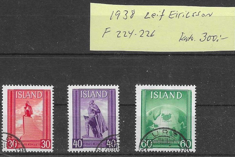 Island F 224-226 "Leif Ericsson" enligt bild. Katalogvärde 300 kr