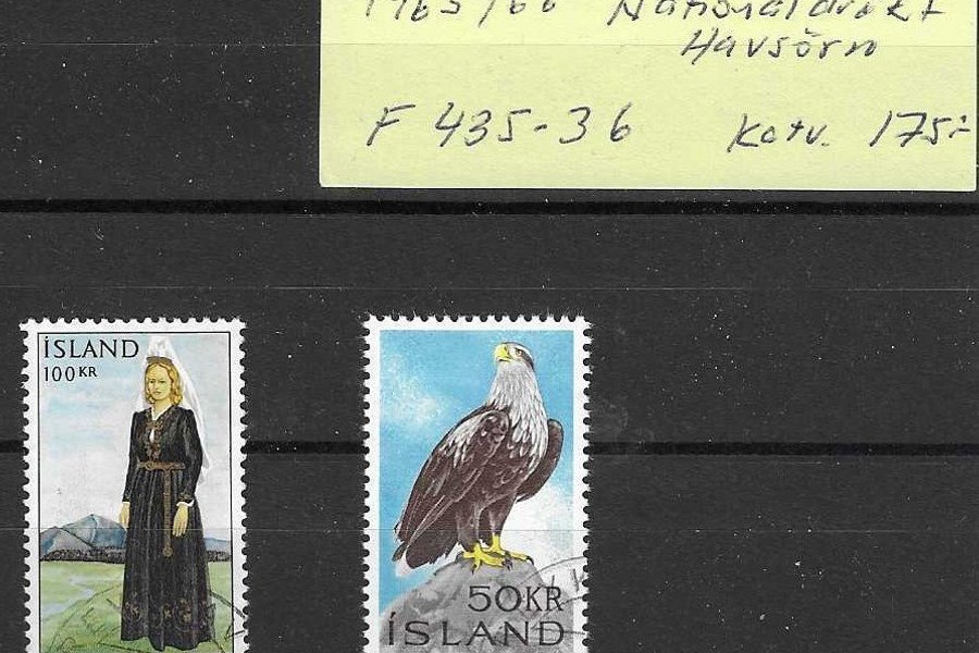 Island F435-436 "Nationaldräkt/Havsörn". Katalogvärde 175 Kronor