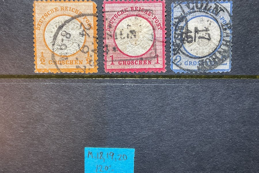 Stämplade frimärken Stora bröstskölden 1872 M.18-20 (120:-)