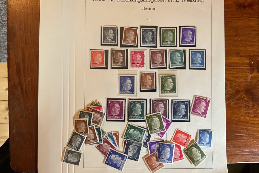 Ett blad + lösa frimärken Ukraine urtaget ur ett Tyskt album