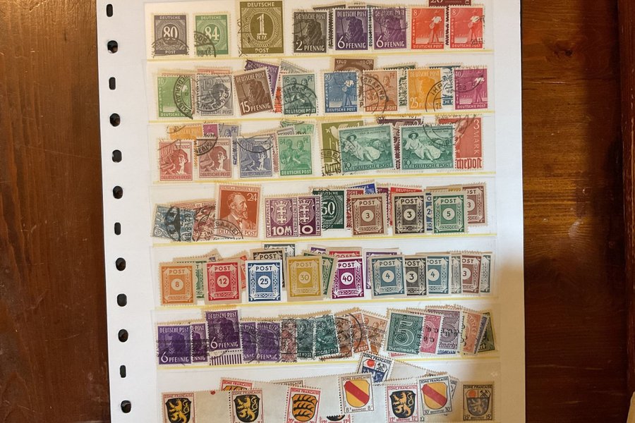 Ett visirblad med stämplade/ostämplade frimärken från Allierad ockupation