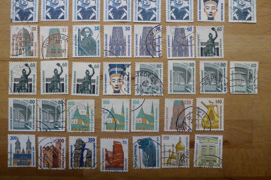 Frimärken från Tyskland Bund ur serien "Sevärdheter, stämplade i enlighet med foto. Något postfriskt märke kan förekomma.