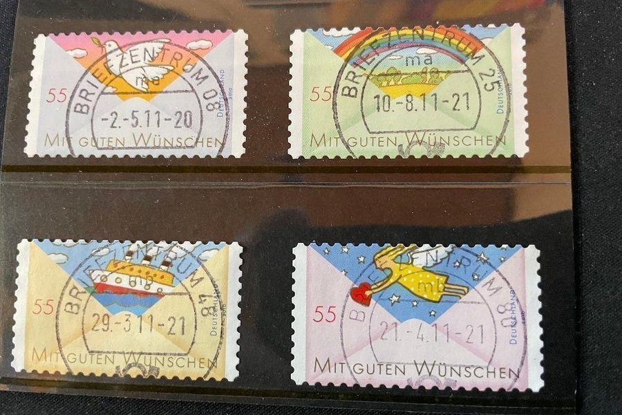 4 stycken lyckönskningsmärken från Tyskland, utgivna 2010