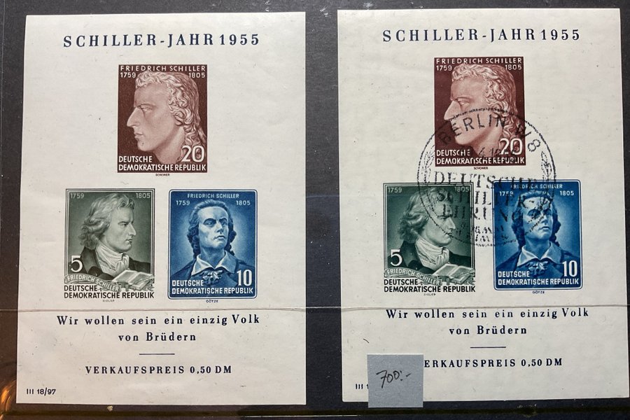 Ett ostämplat (spår av fs) & ett stämplat block nr 12 från DDR