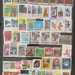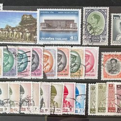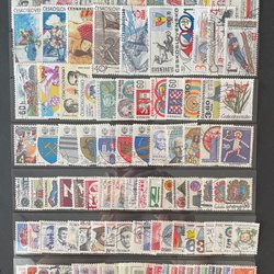 Gammalt och nytt. En del finare äldre märken. Huvudsakligen stämplade märken. Vikta hörn kan förekomma.