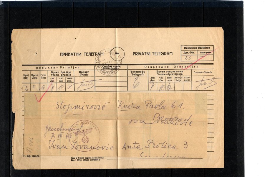 Serbien telegram 1943
