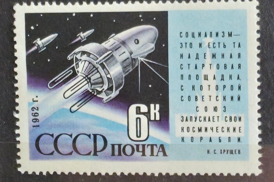 Forskningssatelliten Kosmos 3, postfriskt och komplett från 1962.