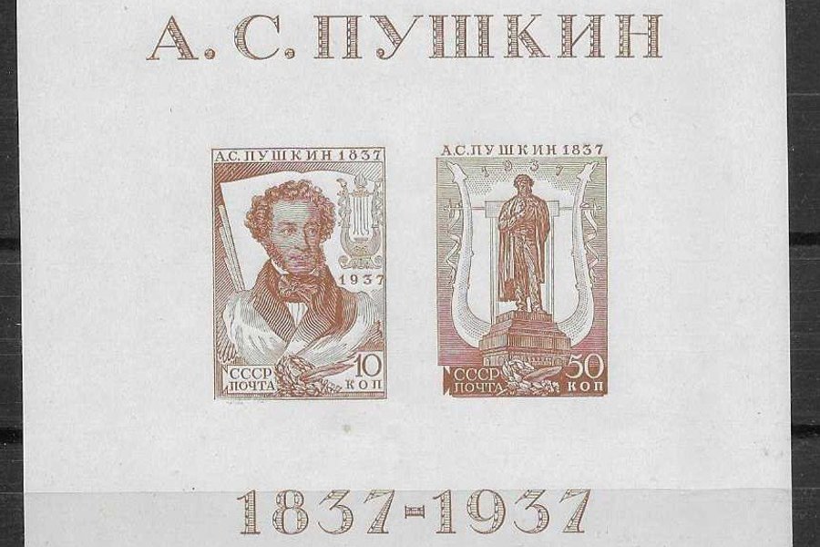 Aleksandr Puschkin 1799-1837. x= Lackerat papper. Postfriskt block I x.