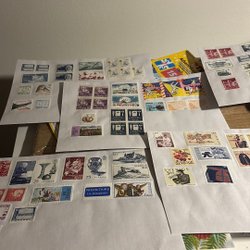 9 visirblad med Julfrimärken och ett mynt