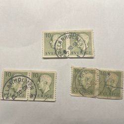 Bilden visar tre enskilda frimärken, som verkar vara i gott skick.