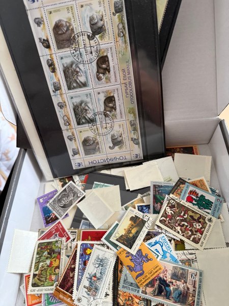 Blandad samling frimärken från främst Sovjetunionen och Östeuropa. Innehåller både stämplade och ostämplade märken med motiv som djur, konst, historia och rymd.