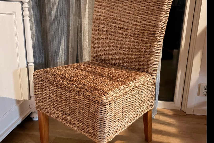 Stol i rotting med träben. Passar bra som matstol eller som en extra sittplats.
