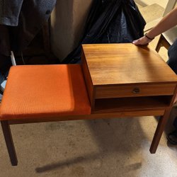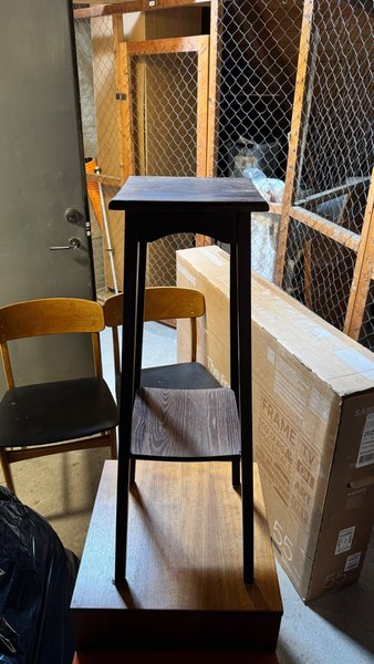Blomsterbord/piedestal med en hylla. Tillverkad av trä. Säljes mot avhämtning. Finns i Majorna.
