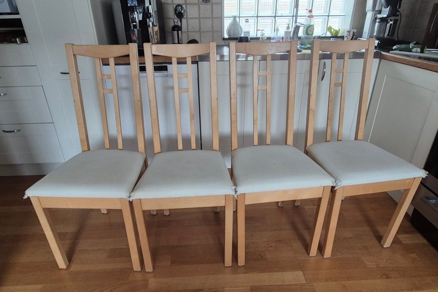 ARON stolar med ljus träfärg och ljusa sitsar från Ikea mått H 100 B 44.