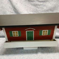 4 st öppningsbara småfågelholkar, med plåt runt hålet. Tak i plywood. Passar t ex Talgoxe, Blåmes och Flugsnappare. Virkestjockleck ca 22 mm.