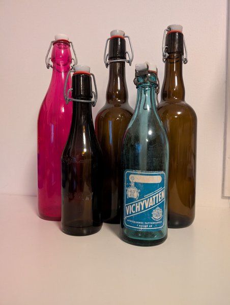 ÄLDRE FLASKOR med porslinsproppar, 5st