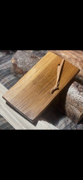 Liten gedigen skärbräda i Ek. Handgjord av mig. Massiv Ek, ej limmad för att den ska kunna hålla i evigheter. Perfekt att ha i ryggsäcken vid friluftsliv, eller som detalj i köket. Mått 140x250x18