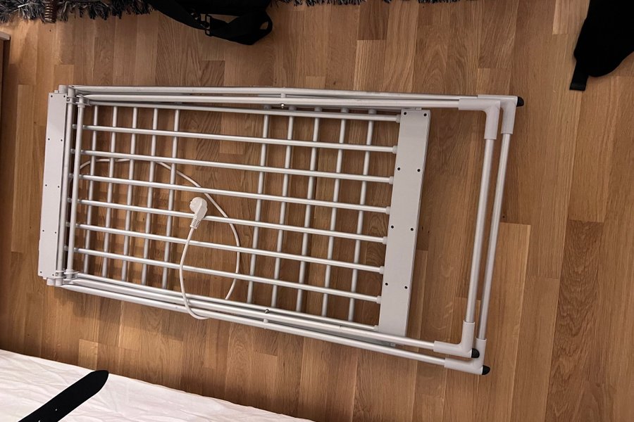 Elektrisk torkställning för kläder. Perfekt för att torka tvätt effektivt inomhus. Den är hopfällbar för enkel förvaring när den inte används.