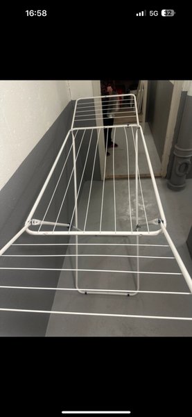 Vit torkställning för kläder. Praktisk design som är enkel att fälla ihop och förvara när den inte används. Passar bra för att torka tvätt inomhus eller utomhus.