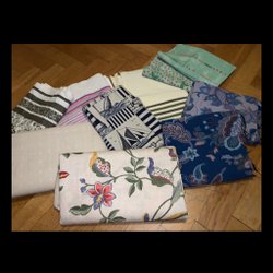 Diverse textilier med olika mönster.