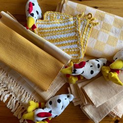 Ett par panelgardiner och två juldukar