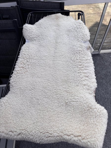 Fårskinn i vit färg. Passar bra som inredningsdetalj i hemmet eller som sittunderlag.