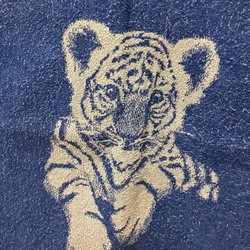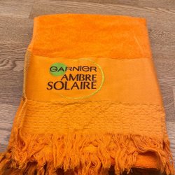 En ljusblå handduk med texten ”PARTILLE.SE” tryckt på framsidan. Perfekt för stranden eller badrummet.Mått 140x70