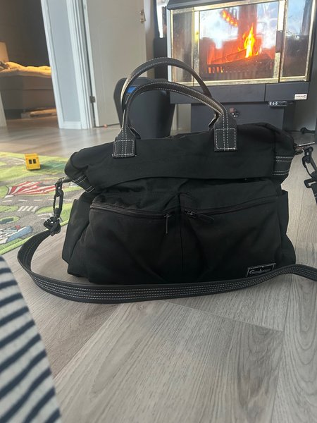 Svart skötväska av märket Emmaljunga.